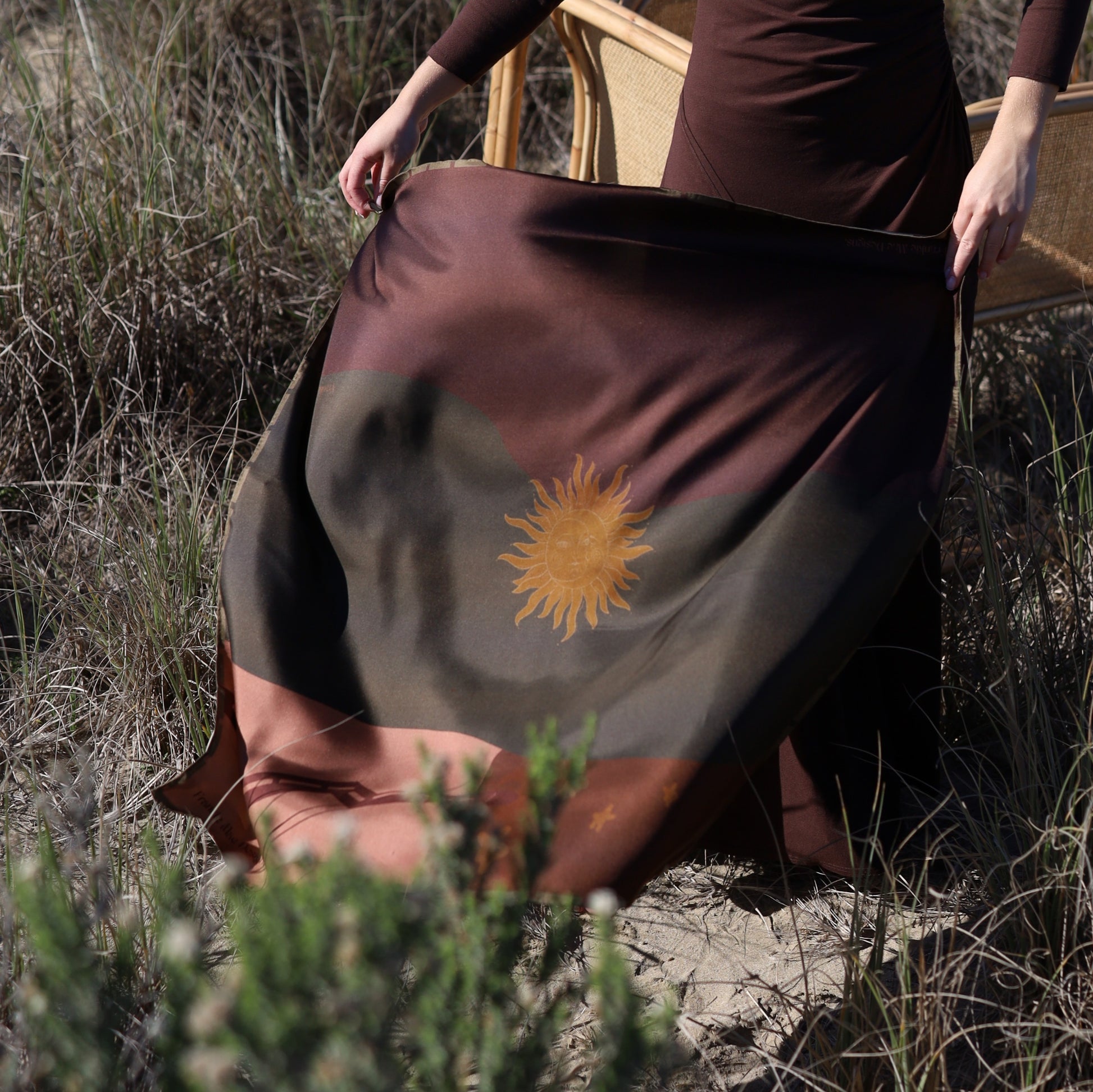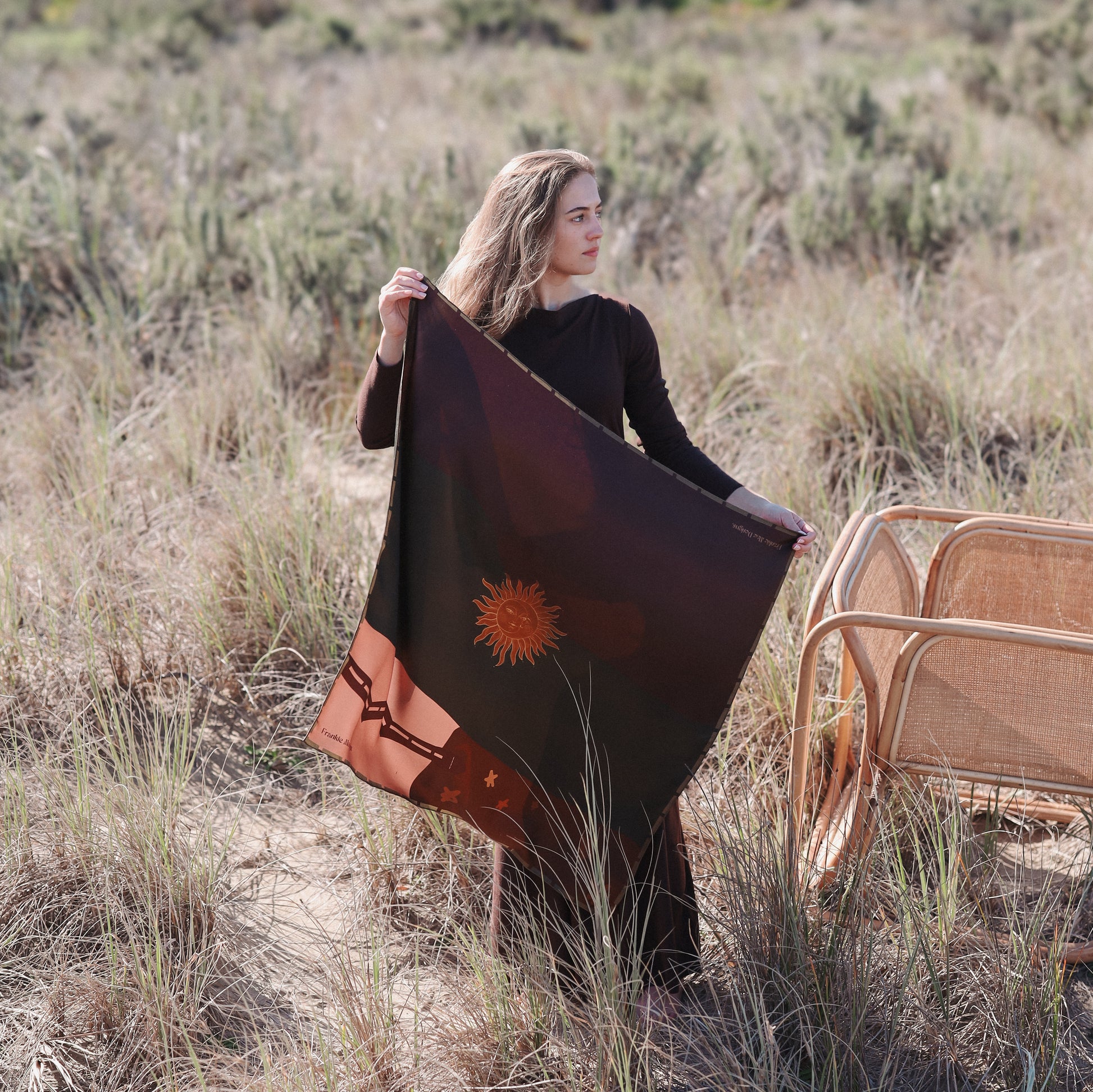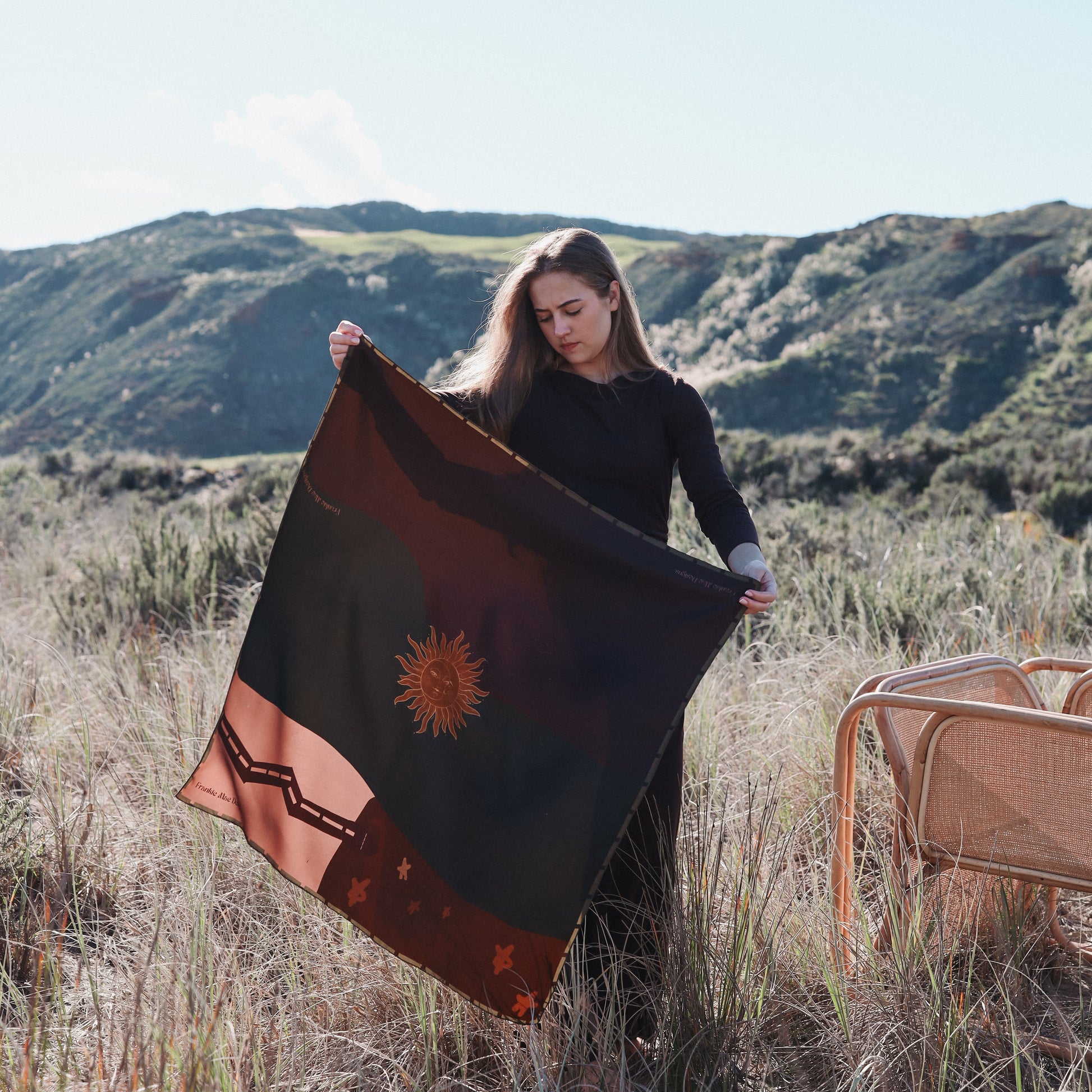 Say hello to AW25 – our latest drop of silk scarves. Hand-painted in-house, this design stands out for its originality and refined detail. Made from luxe 100% twill silk with hand-rolled edges, and measures 92x92 cm.